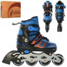 Ролики A 4137-M-BL(35-38) (1шт) раздв, шнур+бакля,ал.рама,колПУ70мм, 1св, синий,в кор-ке,37-27-11см