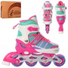 Ролики A 4122-L-R(39-42) розсув., шнур+бакля, ал.рама, кол.ПУ70мм., червоний, кор.