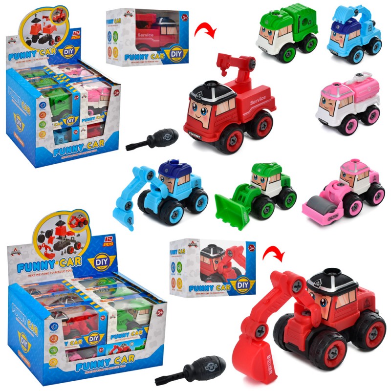 Конструктор LY031C-C на шурупах, будтехніка, 12 шт. в диспл., 2 види, 29-17-20/24-19-20см.