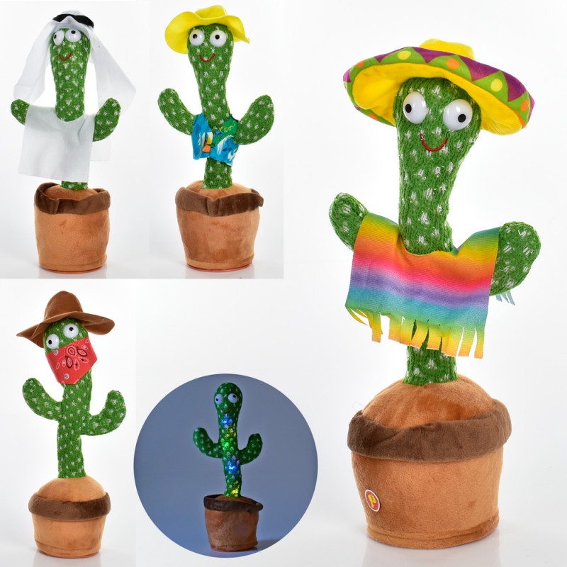 М'яка іграшка MP 2278-1 кактус, повторюшка, муз., танцює, світло, 4 види, бат., кул., 10-34-10 см.
