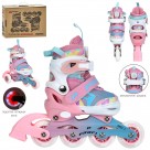 Ролики A 4147-XS-P (27-30)розсув.,шнур.+бакля,ал.рама,кол.ПУ,64мм,1світ.,комбо,рожев.,кор,34,5-27-10