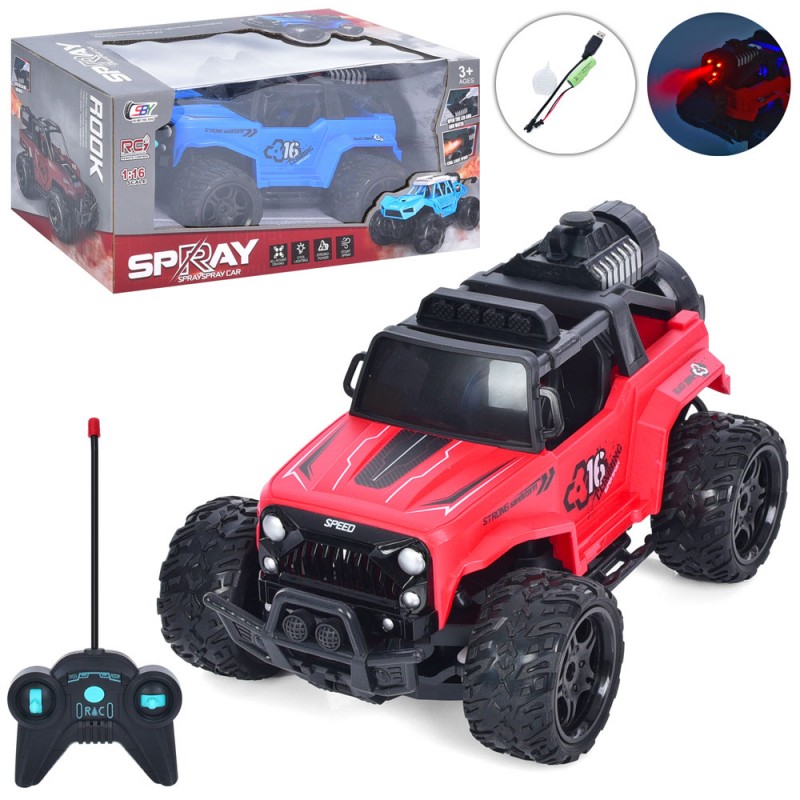Джип SBY163-4A (12шт) 24см,р/у,аккум,USBзарядка,1:16,пар,свет,резин.кол,2цвета,в кор-ке,30-15,5-14см