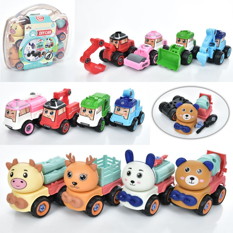 Конструктор LY051B-D-C RP на шурупах, машинка 4 шт., від 18 дет., 3 види, валіза, 28-25-7 см.