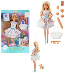 Лялька 69045 шарнірна, сукня, собака вагітна, миска, кор., 20-20,5-6 см.