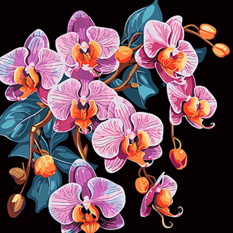 Набір для розпису по номерах Орхідея у вишуканості Strateg на чорному фоні розміром 40х40 см (AV4040-39)