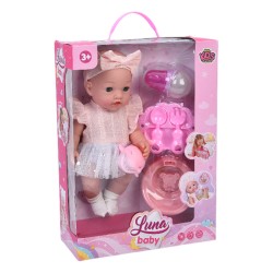 Лялька DH2370A м'яконабивна, соска, муз., бат. (табл.), кор., 23-37-11 см.