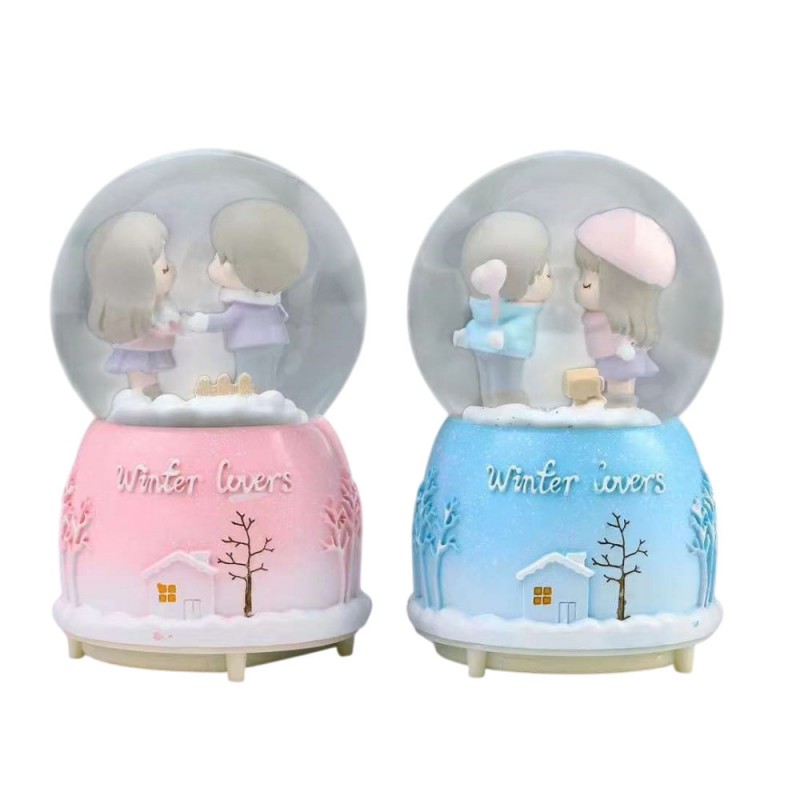 Декоративна куля JM21C33 Winter love, сніжна куля, 2 види, муз., світло,бат.(таб.),кор.,14-19-14см.
