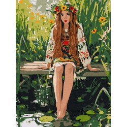 Набір для розпису по номерах Кішка в рожевих відтінках Strateg на чорному фоні розміром 30х40 см (FH-9)