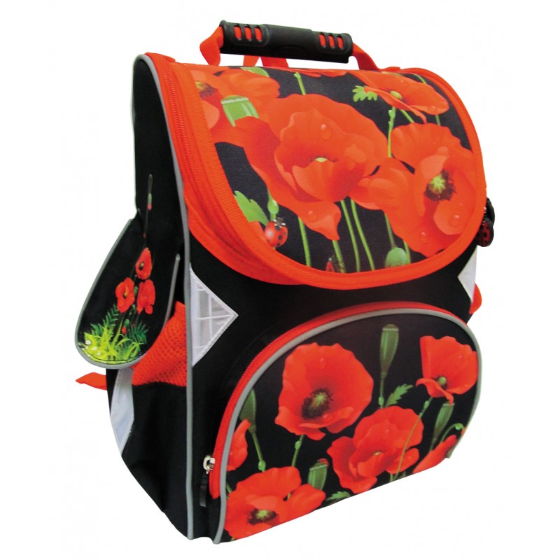 JO-1512 Рюкзак коробка "Маки на черном" 13,5'' 3 отд., ортоп., светоотраж.