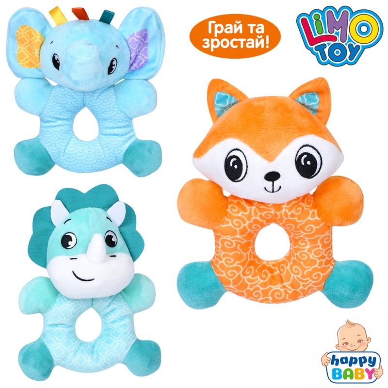 Брязкальце м'яке HB 0059 ABC плюш, 3 види (лисичка, динозавр, слон), кул., 14-16-7 см.