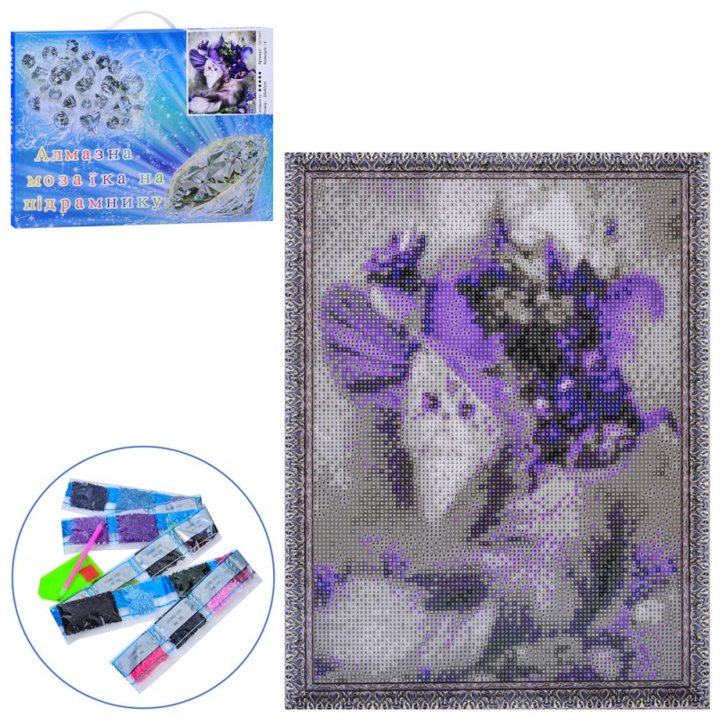 Набір для творчості MK 5370 алмазна мозаїка/вишивка, Кішка в капелюшку, 30-40см., кор., 41-31-2,5см.