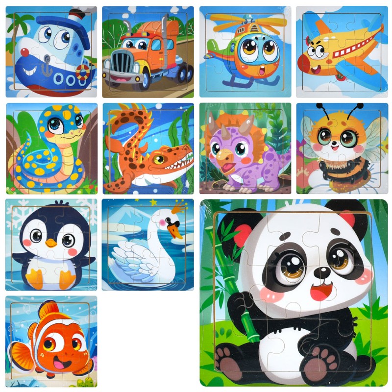 Дерев'яна іграшка Пазли MD 1504 (100шт) 9дет, мікс видів(тварина, транспорт), у пакеті, 11-11-0,5см