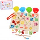 Дерев'яна іграшка Геометрика MD 0837 (16шт) трейлер, 29,5см, каталка(на шнурі), 3 види (1вид-палички, 2види-геометріка), в кор-ці, 30,5-9,5-7см