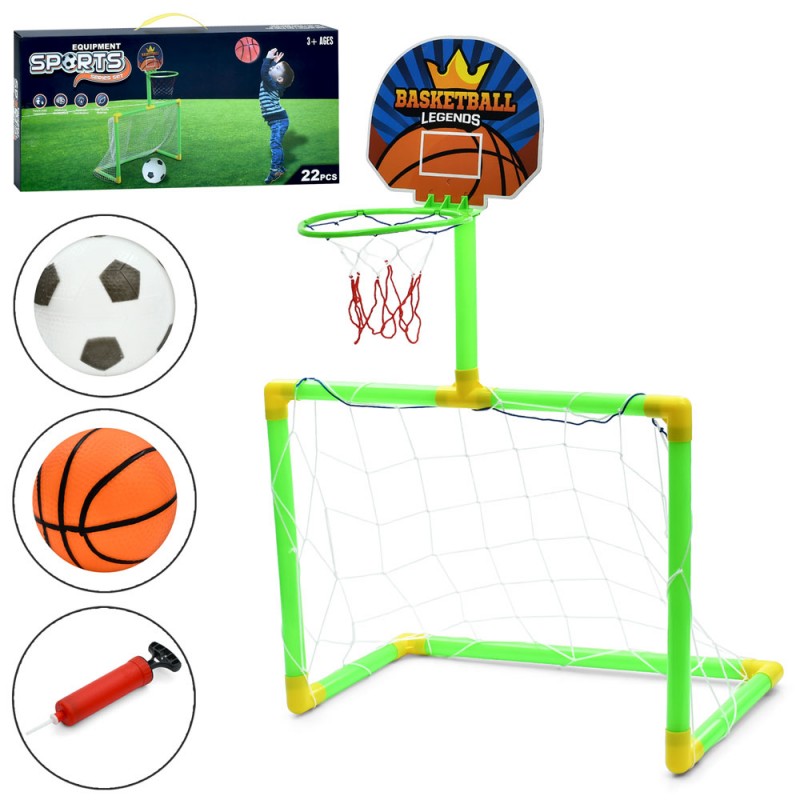Футбольні ворота MR 1526 2в1(баскет.кільце, пласт.),сітка 2шт.,м'яч 2шт.,насос,22дет.,кор.,51-23-5см