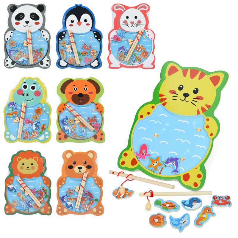 Дерев'яна іграшка Риболовля MD 1374 (60шт) магнитна, 2 вудки, морські мешканці 10шт, 8 видів, у пакеті, 20,5-28-1,5см