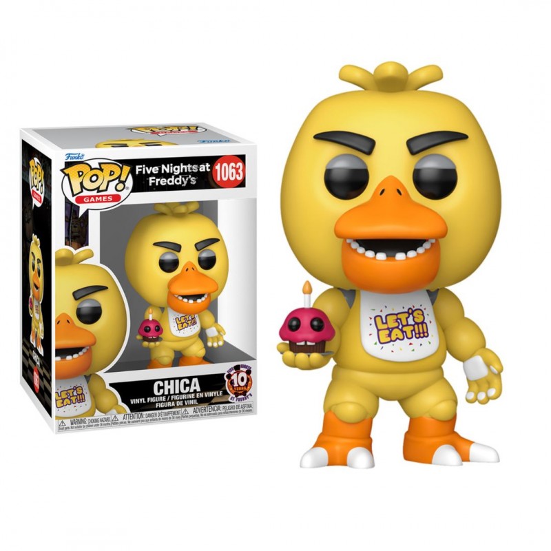 Вінілова ігрова фігурка FUNKO POP! серії «5 ночей у Фредді» - ЧІКА З МІСТЕРОМ КЕКСОМ стане чудовим подарунком як для колекціонерів, так і для прихильників гри та фільму «5 ночей у Фредді». Чіка — жовтий аніматронік-курка з фартухом «Let's Eat!», одна з головних антагоністів. Вона переслідує гравця ночами, часто з’являючись із Містером Кексом — моторошним кексом зі свічкою, що став її візитівкою. Обоє створюють лякаючу атмосферу під маскою дитячої розваги.