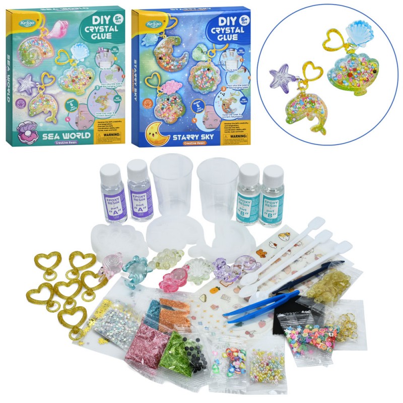 Набір для творчості 708B-34-35 брелок,зроби сам,формочки 3шт.,рідина,глітер,мішура,інструменти,2види