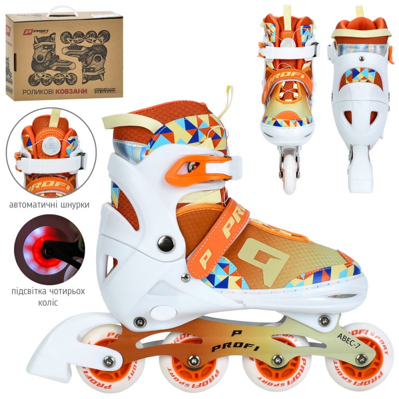 Ролики A4156-L-OR (39-42)розсувні,шнурівка+бакля,алюм.рама,ABEC-7,колеса ПУ70мм,світло,зібрані,помар