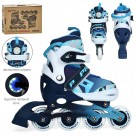 Ролики A4156-XS-BL (27-30)розсувні,шнурівка+бакля,алюм.рама,ABEC-7,колеса ПУ64мм,світло,синій,кор.