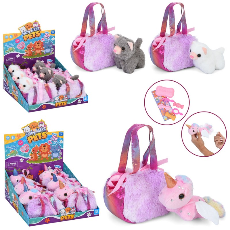 Тварина 7622-125-29 (54шт) 12см, плюш, аксесуари, сумка 13см, 2 види дисплеїв (єдиноріг, кіт), 6шт в дисплеї, 27-29-14см