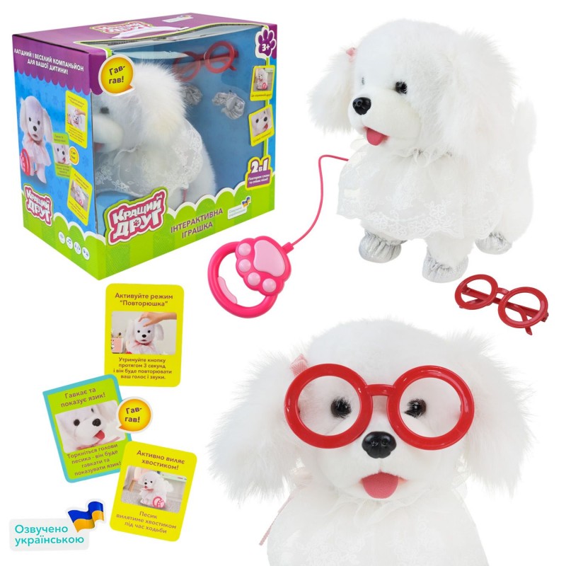 Іграшка м'яка інтерактивна Кращий друг арт. BF2504 собачка на повідку УКР мова, повтор голосу, короб