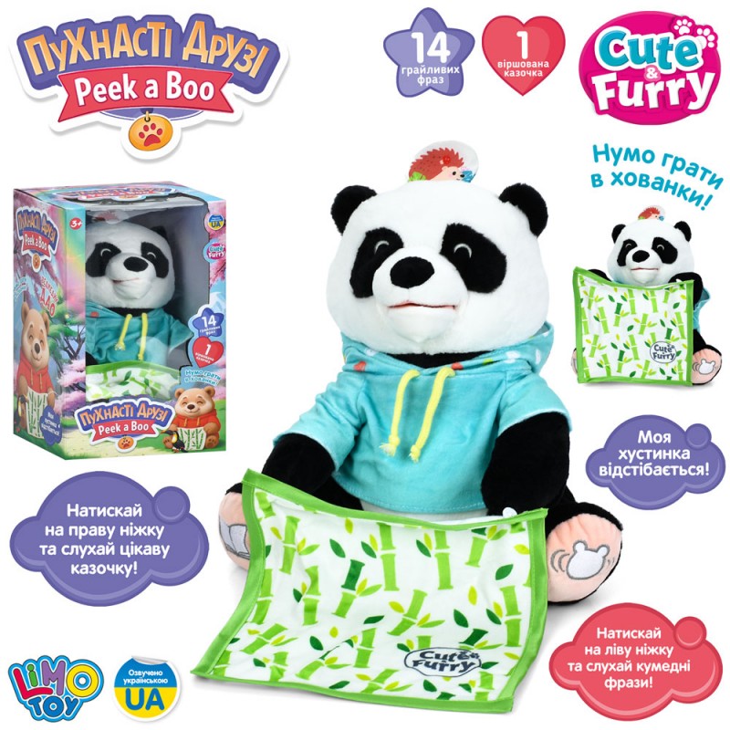 Тварина M 6226 I UA панда, грає в хованки, м'яка іграшка, плюш, муз.(укр), бат.,кор.,19,5-31,5-20см.