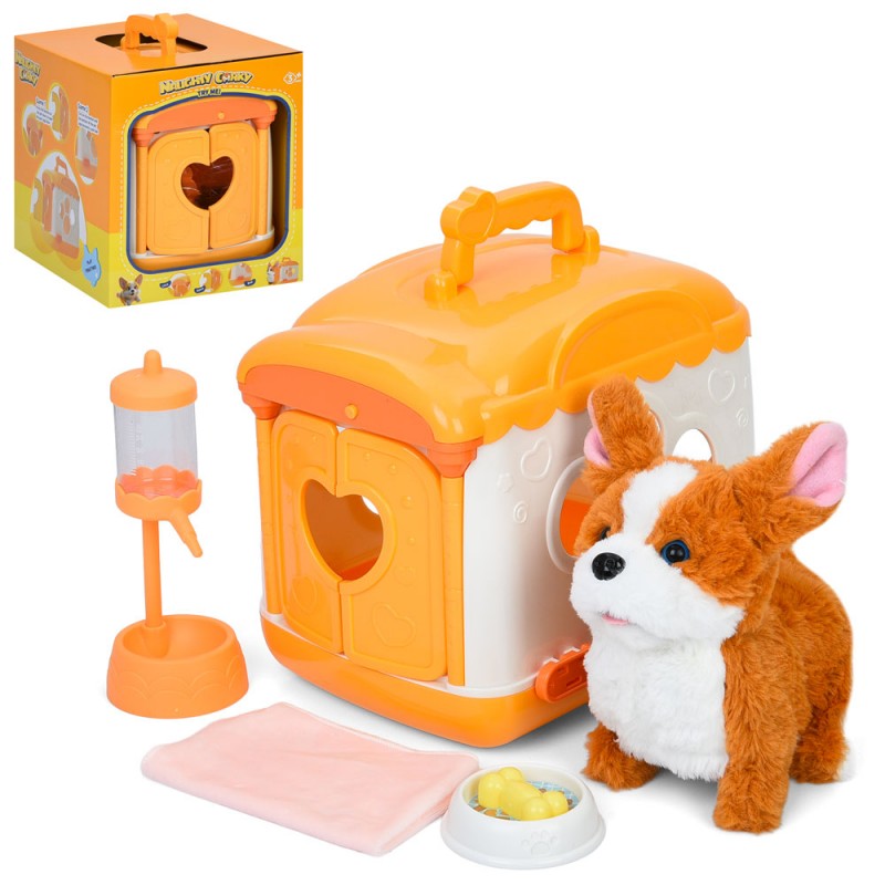 Тварина в переносці 933-210E (12шт) собака, 17см, звук, ходить, рухлива голова, аксесуари, переноска 24-22-17см, на бат-ці, в кор-ці, 26-23-20,5см