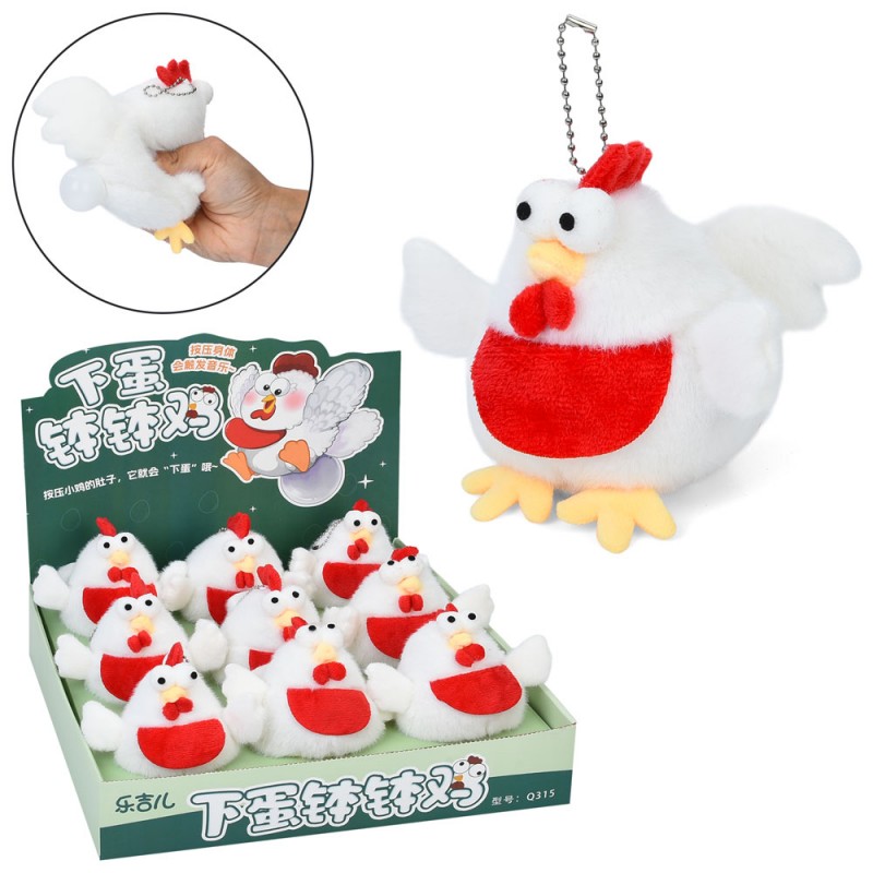 М'яка іграшка Q315 курка, видуває кульку, брелок, 9 шт. в диспл., муз., бат. (табл.), 32-13-32 см.