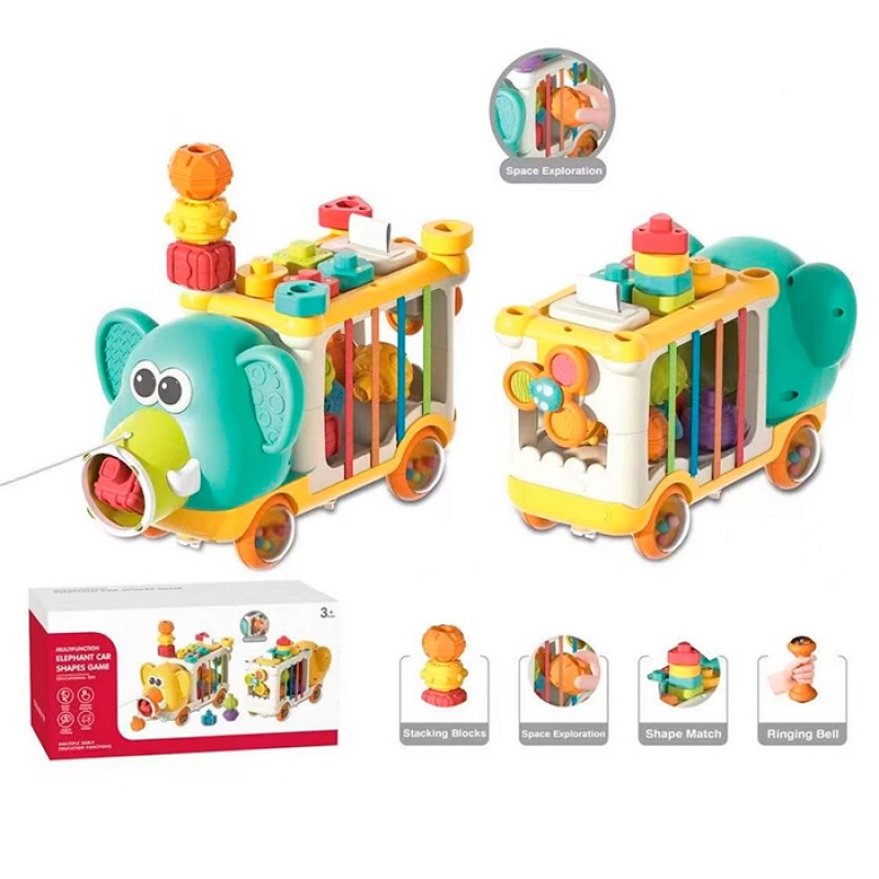 Гра YL1303 машина,слон на колесах,каталка на шнурі,сортер,грань-резинки,спінер,2 кольори,кор.,31,5