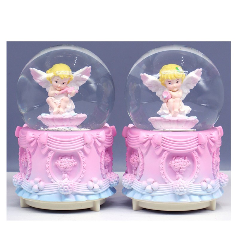Декоративна куля JM24105Y (36шт) Angel, сніжна куля, 13см, музика, світло, 2 види, на бат-ці, в кор-ці, 11-15-11см