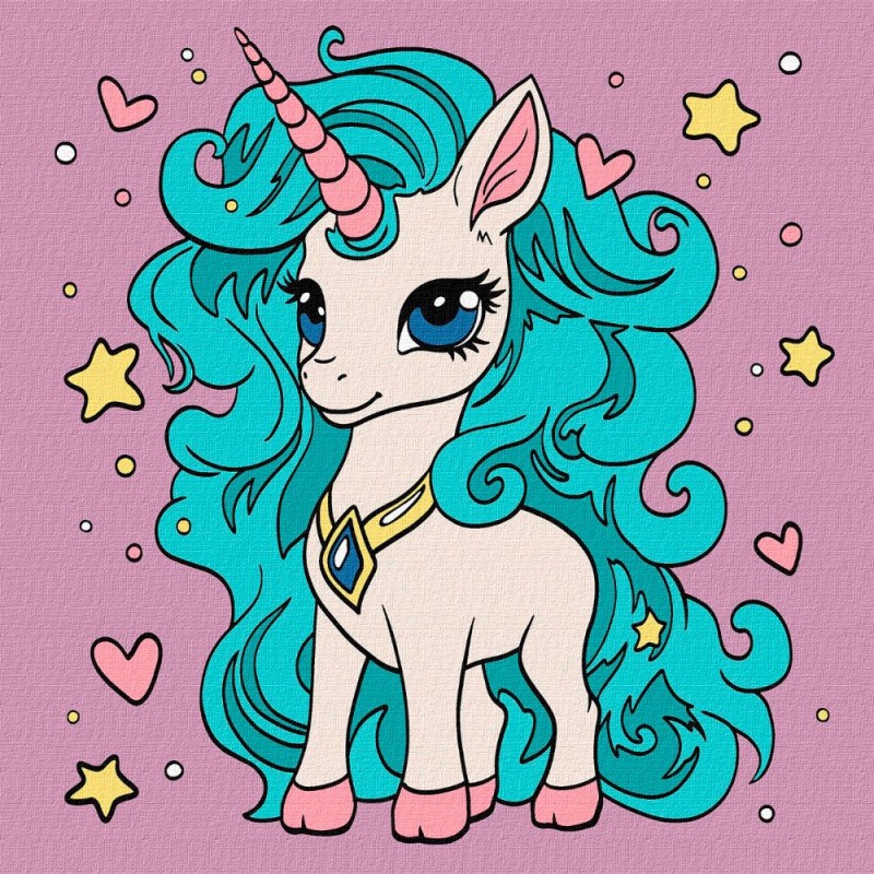 Набір 7+ для розпису по номерах. "Фантастична одноріжка" 25х25см