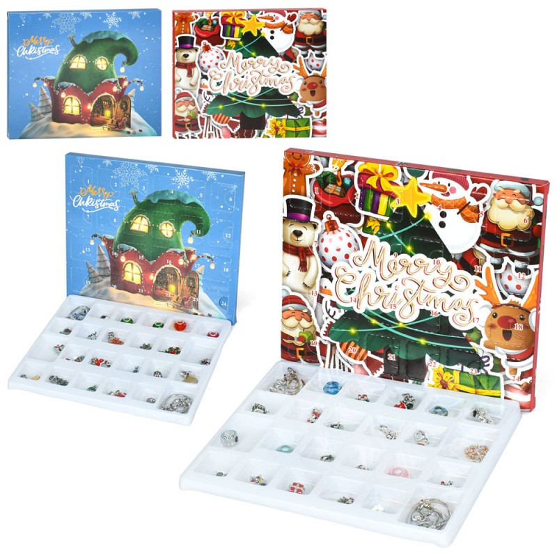 Бісер DLS-1177-78 (24шт) адвент-календар, браслет 2шт, підвіски, різдвяна упаковка, мікс видів, в кор-ці, 20-17-2см