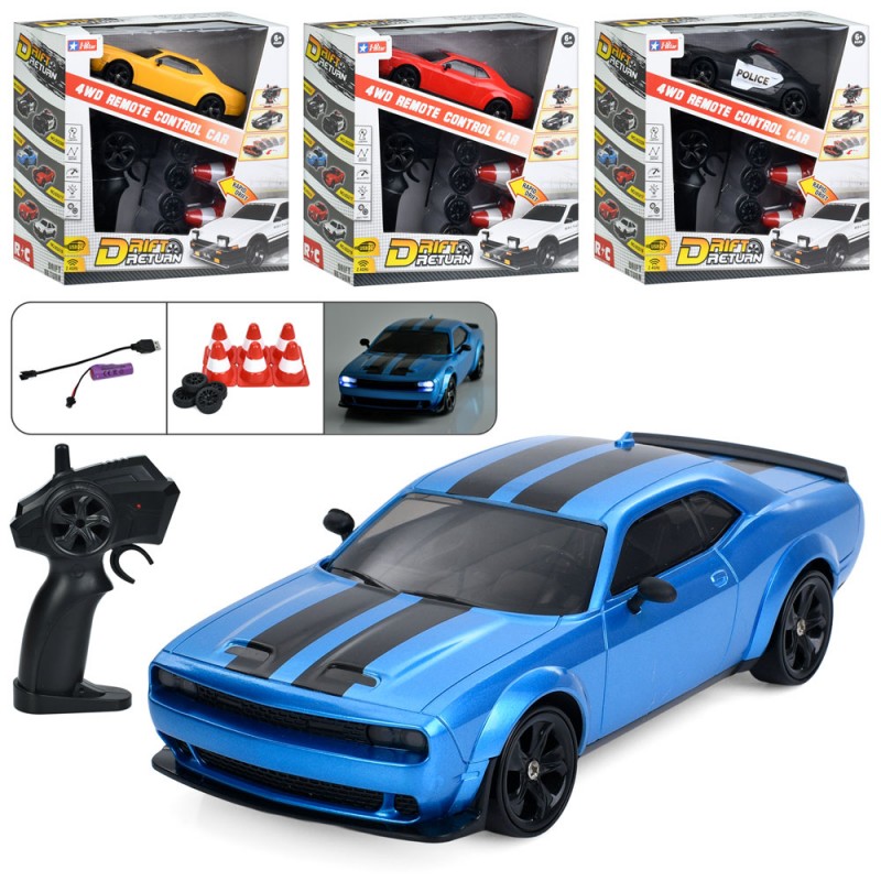 Машина 93217-28 (12шт) р/к2,4G, 19см, акум, світло, дрифт,гумові колеса, доп.колеса, 4х4, USBзарядне,2види(1вид поліція),в кор-ці,25,5-25-11см