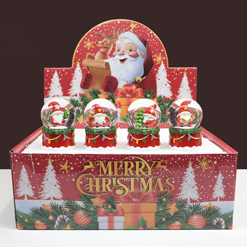 Різдвяний декор M033 (144шт) сніжна куля, 7см, гном, 12шт(4види) в дисплеї, 27,5-10-20см