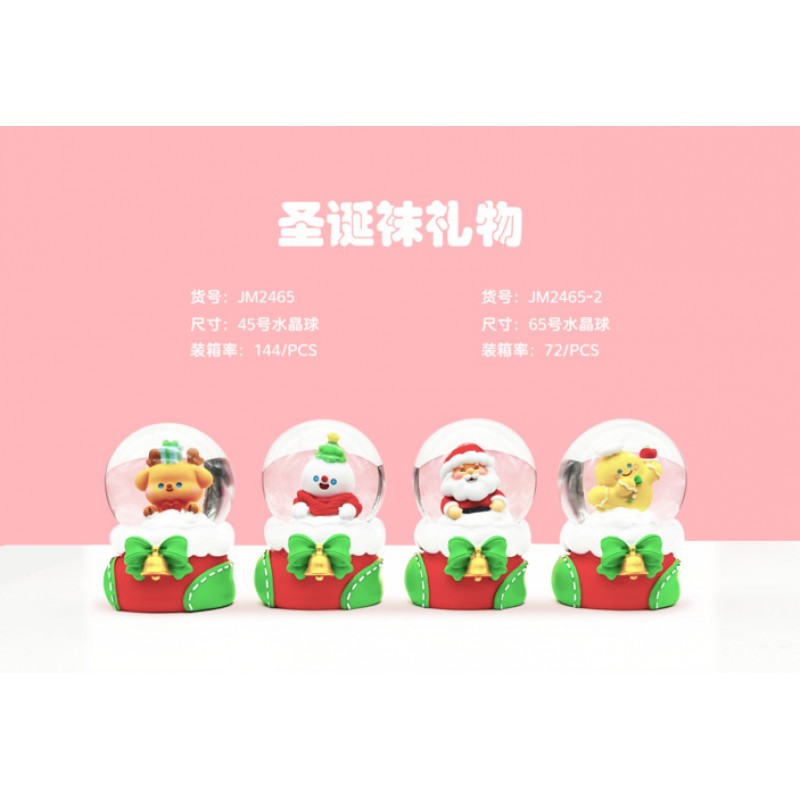 Різдвяний декор JM2465-2 сніжна куля, 4 види, світло, бат. (табл.), кор., 8-10-8 см.