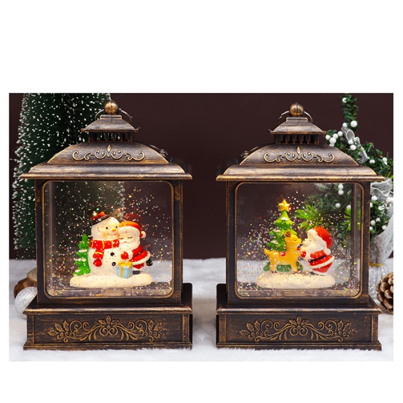 Різдвяний декор FD2238 ліхтарик(з петелькою),сніг,2 реж.,2види,муз.,світло,бат./від мережі(USB),кор.