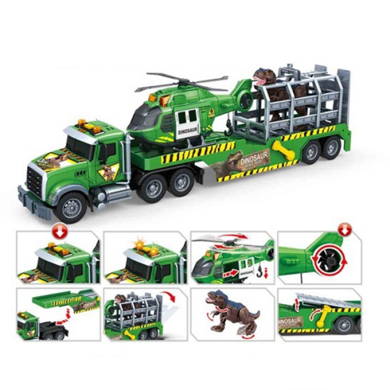 Набір транспорту 666-79R інерц., трейлер,гум.колеса,гелікоптер,динозавр,муз.,світло,бат.(табл.),кор.