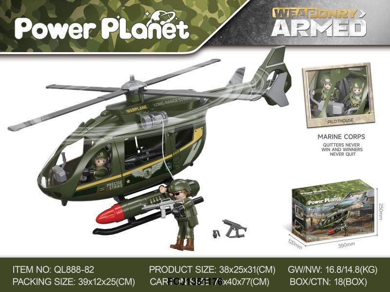 Військовий гелікоптер QL888-82 рухливі деталі, фігурка, розібр., кор., 39-25-12 см.