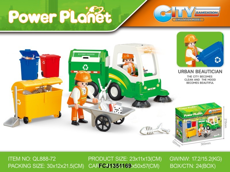 Ігровий набір QL888-72 прибиральна машина, возик, фігурки, баки для сміття, розібр., кор.,30-22-10см