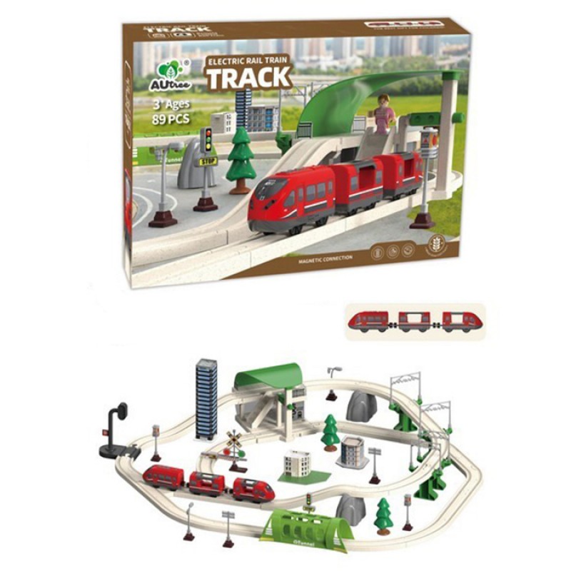 Залізниця AU5664 локомотив, 2 вагони (магнитні кріплення), 96дет.,муз.,світло,бат.,кор.,52-35,5-11см