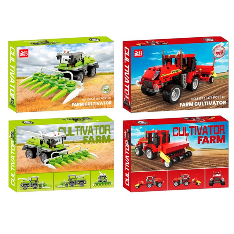 Конструктор 33073-33074 (18шт) трактор, сільхозтехніка, 2 види(485дет, 520дет), в кор-ці, 38-26-8см