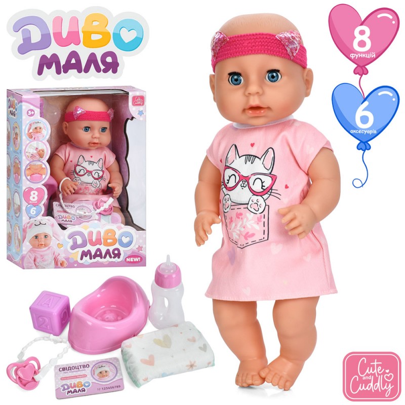 Лялька YL2540F-G-DM-UA п'є-пісяє,сенсор.,реаг.на соску,горщик,пляшечка,підгузок,соска,муз.,бат.,кор.