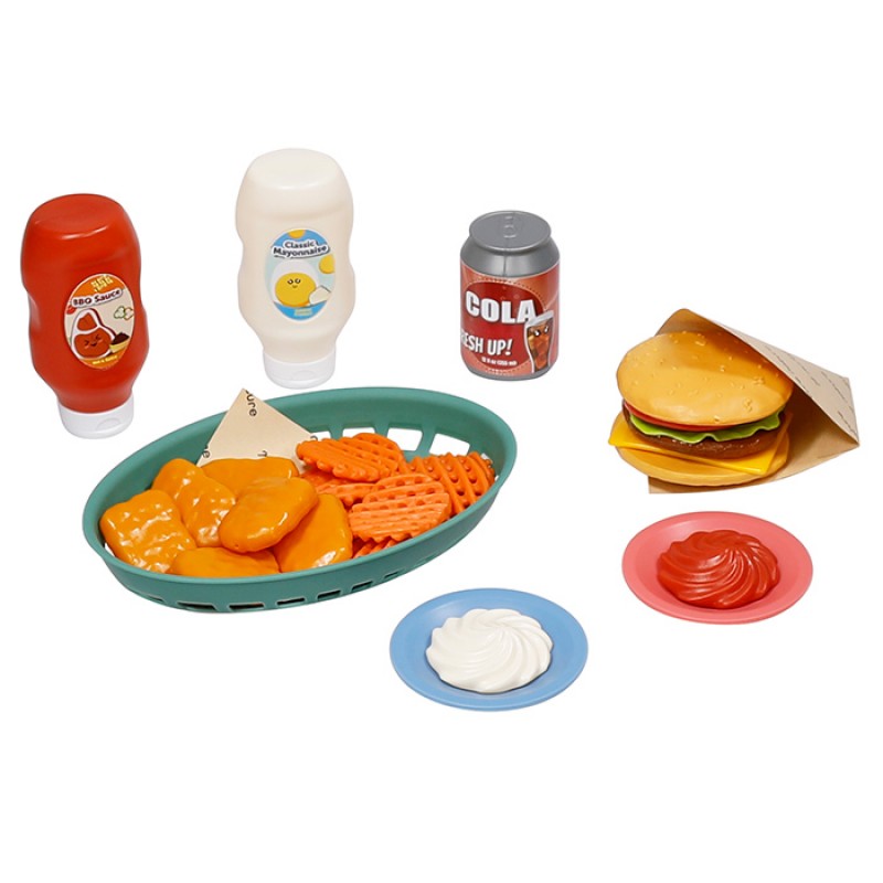 Ігровий набір 111-90155-A010 фаст-фуд, бургер, спеції, чипси, посуд, 28 пред., кор., 30-23-5,5 см.