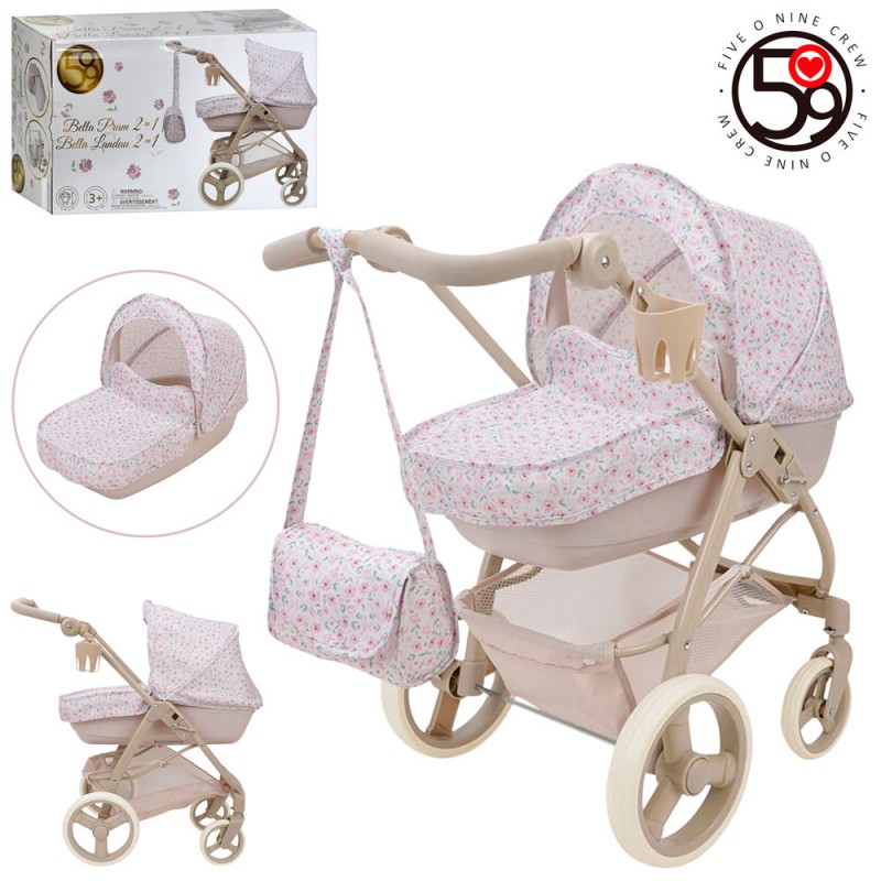 Візок T726056 для ляльки,класика,люлька (пласт.),кошик,підсклянник,сумка,мет.+пласт.,кор.,56-35-22см