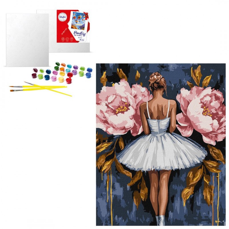 KHO "Балерина з рожевими півоніями з фарбами металiк extra" 40x50см
