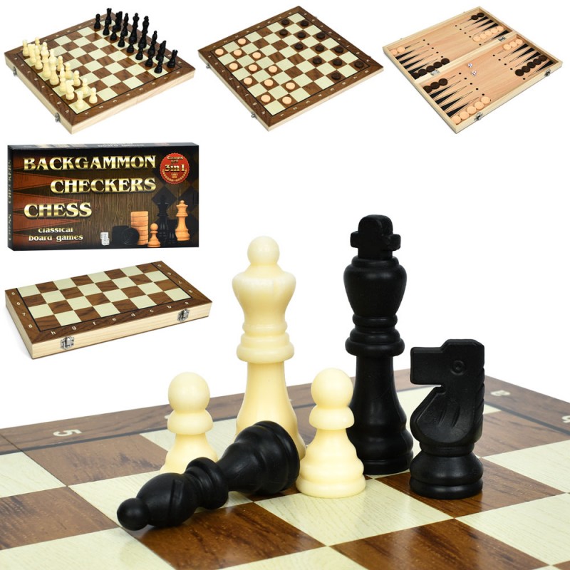 Шахи A0068 (24шт) дерев'яні, 39-39, 3в1(нарди, шашки), фігури дерев'яні та пластик, в кор-ці, 39,5-20,5-4см