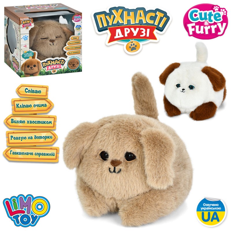 Собака M 6240 I UA (12шт) 20см, сенсорний, музика(укр), звук, клипає очима, виляє хвостиком, 2 кольори, на бат-ці, в кор-ці, 22-22-22см