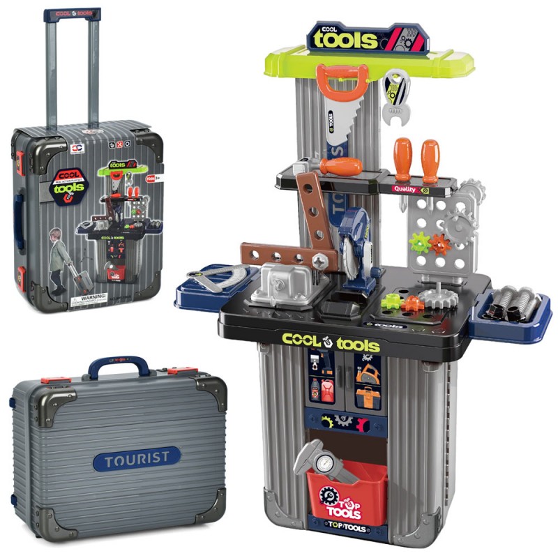 Стіл з інструментами 008-102A 48-24-66см,2в1(чемодан,руч.,2колеса),наб.інстр.,пила,викрутки,шестерні