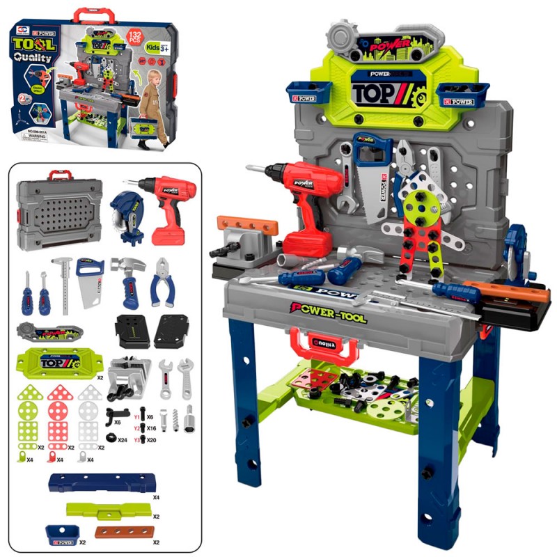 Стіл з інструментами 008-201A 58,5-31,5-81,5см,шурупов.-оберт.сверло,молоток,викрутки,132дет,в чемод