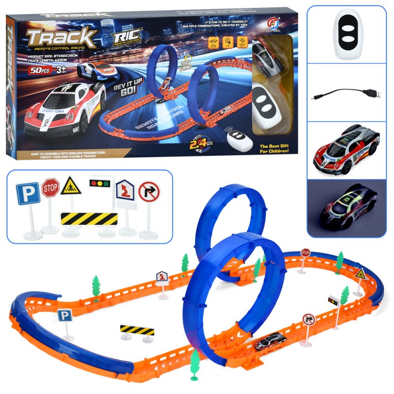 Трек FT-76 403см/97-50-26см,машина(8см,р/к2,4G,акум,USBзар.,світло),дор.знаки,50дет,в кор.,50-24-7см
